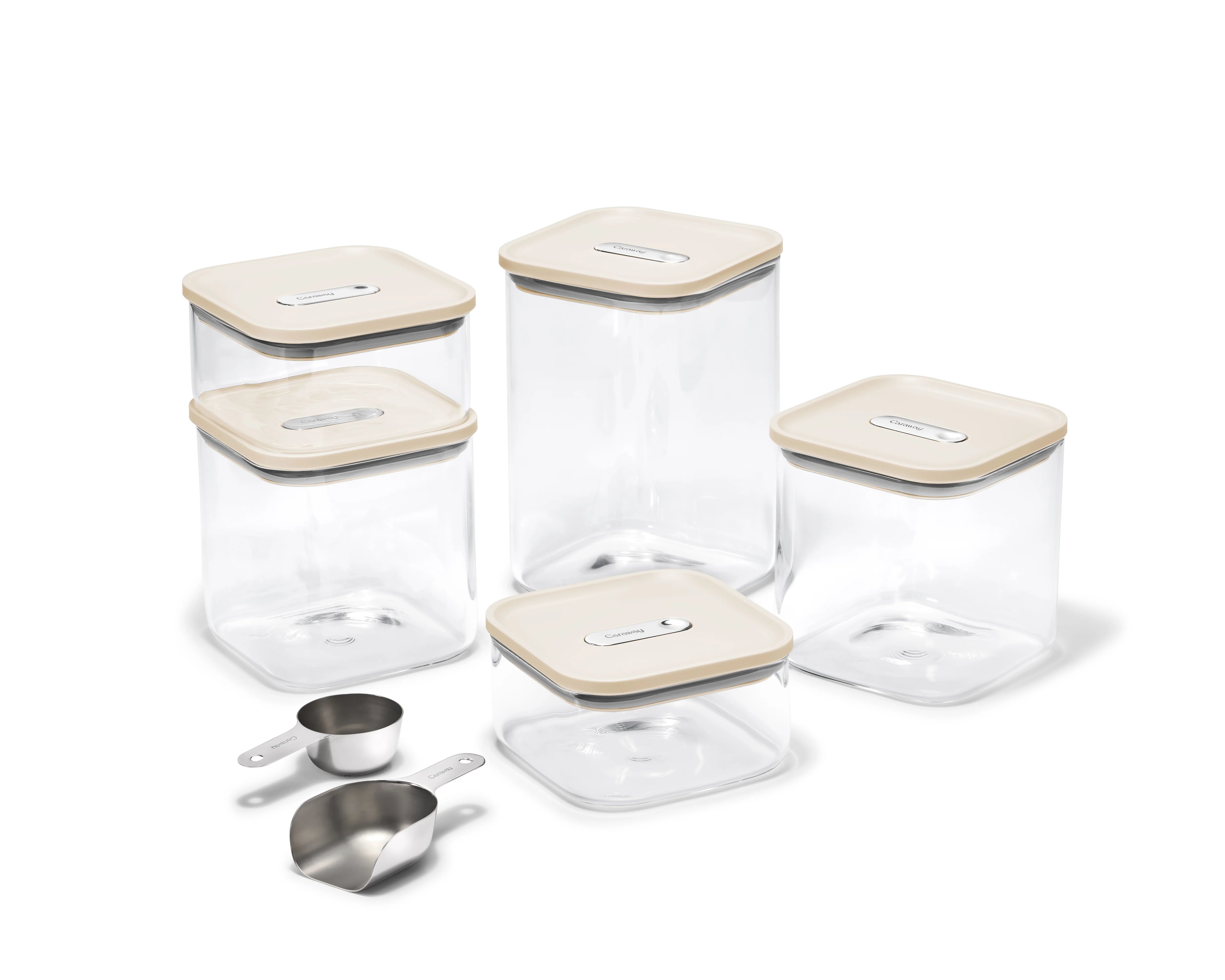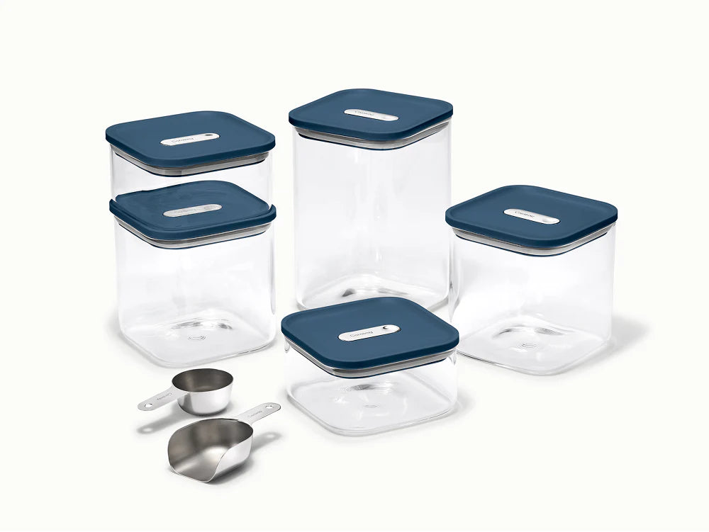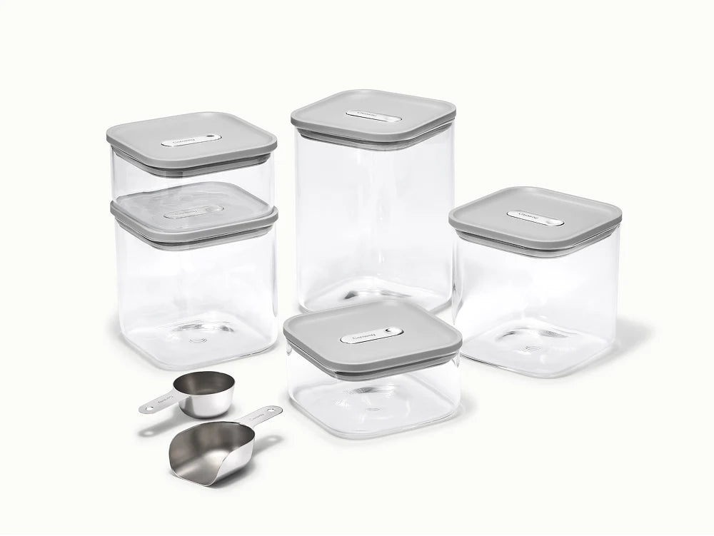 Experience cleaner, more organized storage with Caraway’s 13-piece Glass Airtight Container Set. Crafted from high-resistance, non-toxic glass, these containers feature a precision-engineered True Airtight Seal that locks in freshness while keeping out air, moisture, and pests. Designed for seamless stacking, they maximize space and adapt to your pantry, kitchen, or home storage needs. Each set includes a stainless steel scoop, ¼ measuring cup, and a complimentary magnetic Storage Organizer.